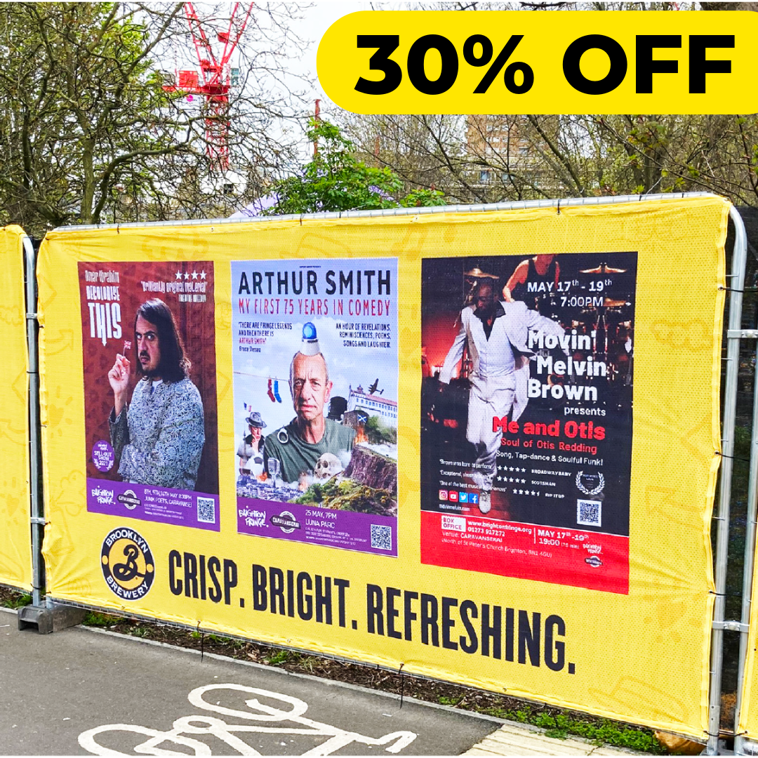We have a large variety of printed display solutions for indoor and outdoor branding, to compliment your heras fence banners. We recommend our popular mesh crowd barrier jackets, this helps you having a perfect outdoor festival and sports event, as well maybe an exhibition way finding.