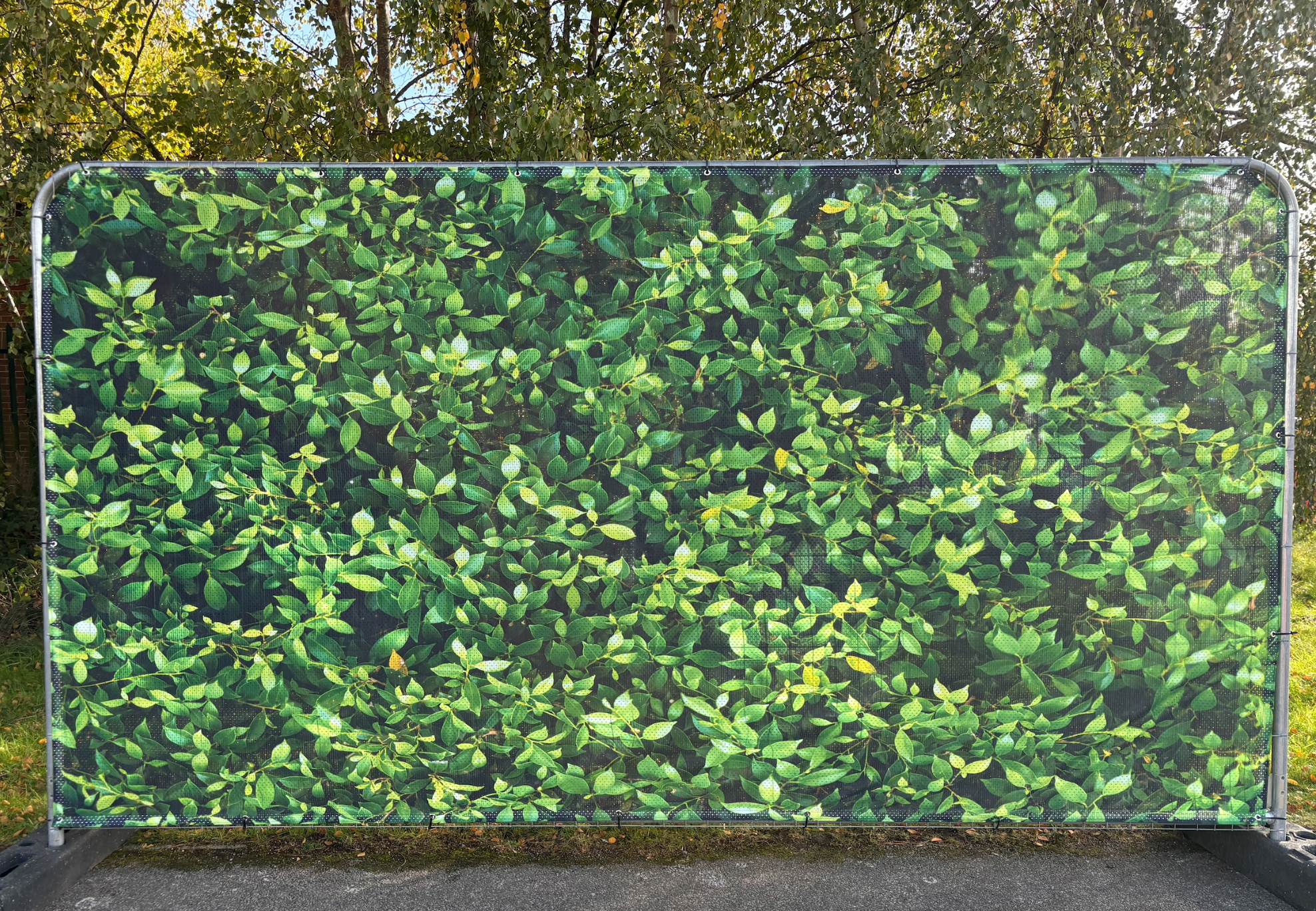 Shop our selection of pre-designed heras fence covers, ready to despatch for a quick turn around fence covering solution. Choose from three unique material options to add privacy to your construction site and cover unsightly fences at your events. Quick and easy to order with no artwork required, pick from a range of standard designs to improve your environment, including hedge, brick and forest designs, as well as block colours.